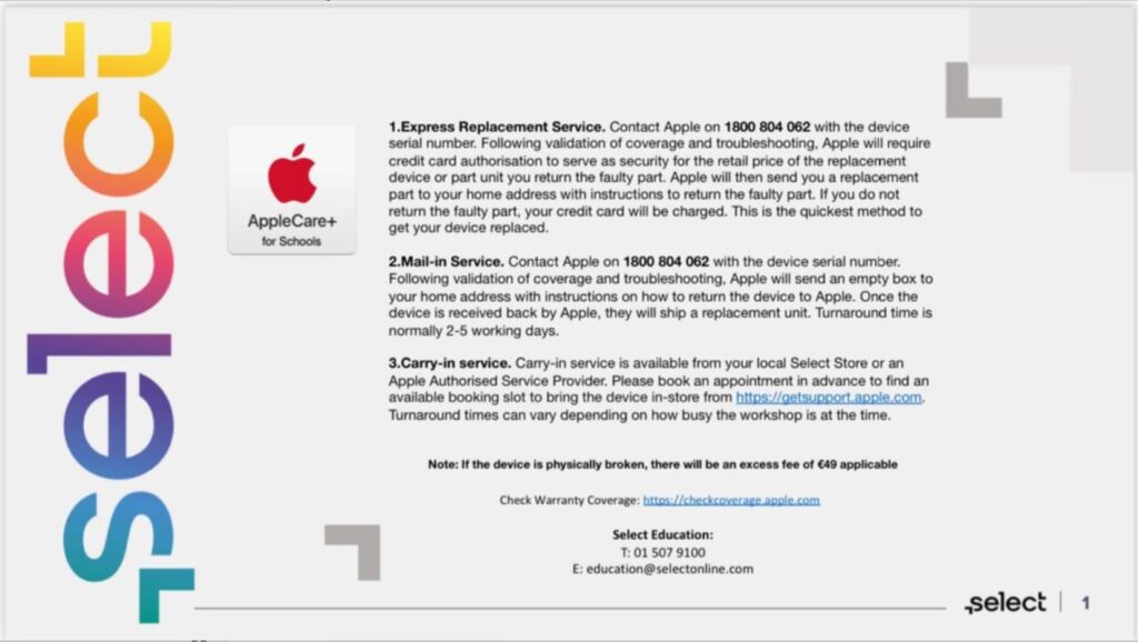 This includes all eBooks, the core set of apps including Office 365 Suite, CorkETB student email address, and iCloud account.